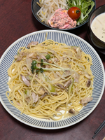我が家の米が尽きました~・・、近所のスーパーは米が品切れだったので今夜はパスタです。 パスタに合うかな?と、残りのオニカサゴでアクアパッツァを作りました。(珍魚?トゲハナスズキも入れちゃいました) 先日マルチグリドルの専用蓋を手に入れたので、使うのが楽しみ~! マルチグリドルにオリーブオイルを熱したら、にんにくスライスで香り付け。 オニカサゴに軽く塩コショウをして投入、両面こんがり焼き色がつくまで焼いたら、アサリ、野菜類を投入。 普通は白ワインとお水を入れるところ、うちでは白ワインでなく、日本酒を入れるんですね~。 グツグツと煮込んで完全に火が通ったらハーブソルトで味を調え、あまり火を通したくない青み野菜を投入。 味がなじめば出来上がり!! レモンを軽く絞って食せばメチャ美味いんだジョー! マルチグリドルは軽い、焦げ付かない、焼き物、汁物なんでもOK、作ってそのまま食卓に出せるから、めちゃくちゃ便利!!