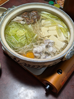冷蔵庫の余り物を使って鍋にしました。 サバフグ、日切れのカット野菜に日切れのもやし、週末のカフェで余したサニーレタスにニンジンやネギなどの切れ端、豆腐は買い置きの木綿豆腐。 鍋を作るからといって買い足した食材はゼロ。 船長ち、今季4回目のフグ鍋は余りもんで作ったんだジョー!
