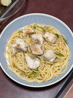 お客さんが置いていったサバフグをパスタにしました。 逃がすと被害出ちゃうし、お客さんに持って帰ってくれとは絶対に言えないので、本当にサバフグにはも~まいっちんぐです。 自己責任で持って帰ってくれるお客さんはありがたいですが、毒サバフグにハイブリッドフグ問題と非常に厄介極まりない魚ですよね~・・。 ローストしたフグ骨とセロリの葉っぱでブイヨンをとって、ニンニクとセロリをオリーブオイルで炒めたところにブイヨンをオン。 バターでコクを出して、塩と黒胡椒で味を調えたら、パスタと混ぜ合わせ。 サバフグの身はブツにしてニンニクと一緒にオリーブオイルで表面カリカリになるまで焼いてからハーブソルトで味付けしてパスタにトッピング。 厄介者スパゲティー、厄介なやつだけど、これ結構イケるんだジョー!