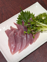イナダって釣っても食べるのに困っちゃいますよね~? 刺身にしても脂のってないし、臭みもあるし、火を通すとパサついちゃてうま味もそんな無いし・・。 味噌とネギ、生姜でたたいて食べるか、そいつをハンバーグ状にまとめてバター焼きにするかが、船長ちの定番ですが、今回は頭とかまで出汁をとって、しゃぶしゃぶにしました。 脂ののったブリみたいには美味くはないけど、夕飯にするには十分なんだジョー! 他に数枚残ってた小さめなカイワリを刺身に。 今が旬、穂紫蘇をあしらえて、しその実と一緒に。 秋を感じる1品になりました。