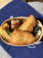 KanoCafeスタッフから素敵な写真が届きましたので、船長ちの晩ご飯ではありませんが、掲載させてもらいますね。 小ぶりな青アジとカイワリをフライにして、のり弁に。 本人は市販のアジフライタルタル海苔弁当をイメージして作ったそうですが、さすがに手作りとだけあって、市販のお弁当よりもグレードが高い! フライのサイズ感もお弁当にジャスト!! いつも船長はカイワリは刺身一択、庶民のシマアジだよ~、なんて言ってるけどフライもいいね。 カイワリは火を通すとマアジに比べ、身が少し硬くなるけど、身のきめが細かく白いから、アジと白身魚の中間いいとこ取りって感じ。 小さくても皮目にはほんのりと脂があるから、フライにしてもパサつかず美味いジョー! お弁当のおかずに困ってる方に朗報・・・、衣つけて個別にラップして冷凍しておけば、あとは油で揚げるだけ。 小ぶりなアジやカイワリだって、ちゃんと処理すれば、結構なお弁当のおかずになりますよ~。