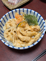 船長ちは本日もイトヨリです。 冷蔵庫にイトヨリ渋滞中!ということで、消化を図るため天丼を作りました。 イトヨリというと洋食のイメージが強い魚ですが、油との相性が良いので天種にも向く魚ですよ~。 みりんを少々多め入れて煮詰めて甘く仕上げた丼つゆと程よくマッチ。 天ぷらの残り物で翌日に天丼することが多いけど、やっぱ天丼は揚げたてのほうがサクッと感があって美味いんだジョー!
