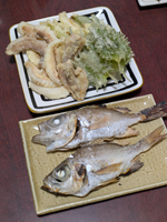小ぶりな青アジは脂が乗ってないので、薄衣で油で揚げて、素揚げのなすと共に揚げだしに。